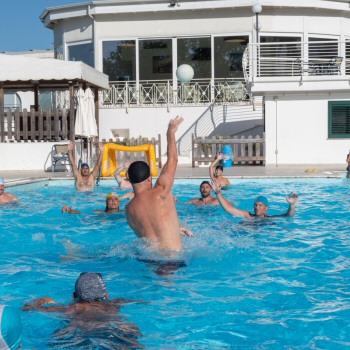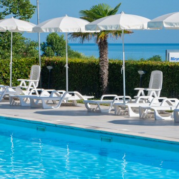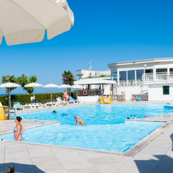 Tutto intorno si sviluppa il solarium con lettini prendisole e ombrelloni e il bar che serve freschi drink e ottimi gelati e snack.