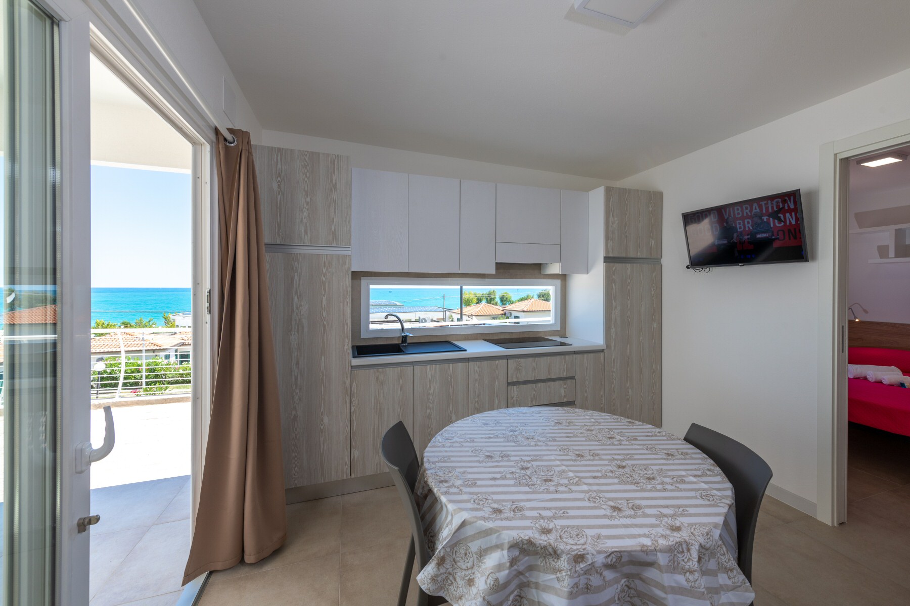 Casa mobile di circa 35mq con grande soggiorno con letto a castello ed angolo cottura, camera matrimoniale con cabina armadio, bagno grande,